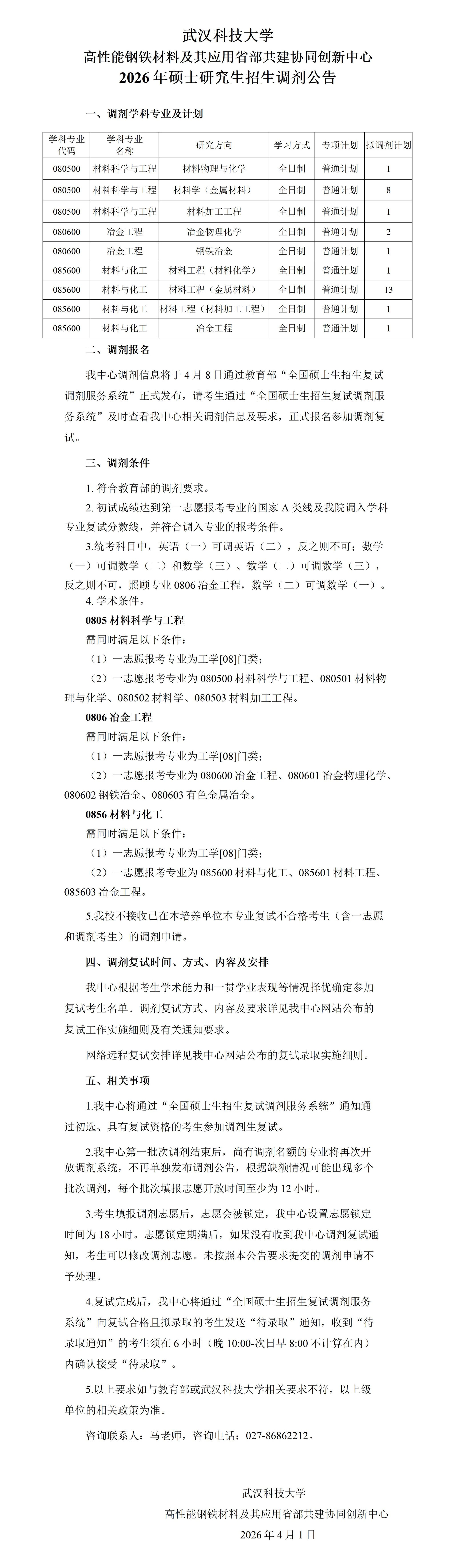 协同创新中心2026年硕士研究生招生调剂公告
